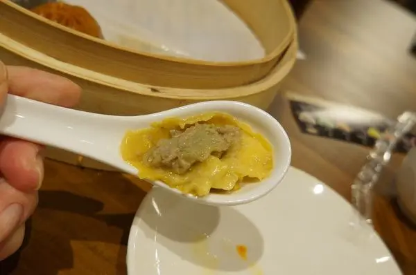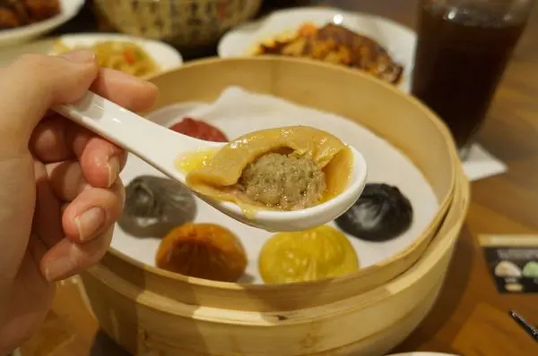 小籠包整體而言皮非常薄,內餡充滿湯汁,吃的時候小心會爆漿燙口!