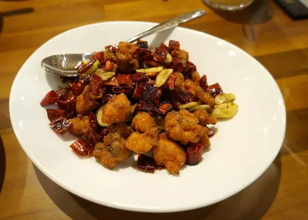 雞肉炸到非常酥,搭配乾辣椒蒜片熱炒, 比較重口味,非常適合當下酒菜XD
