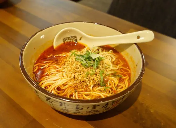 麻辣香、花生香、麻醬香撲鼻而來,店員很貼心幫我們剪成兩半好分食,