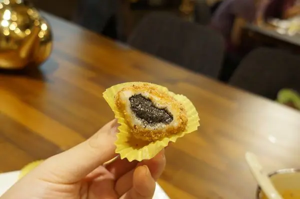 熱呼呼的吃,外皮裹的花生粉好香,麻糬好Q綿,不黏牙,內餡芝麻好濃郁,甜而不膩,