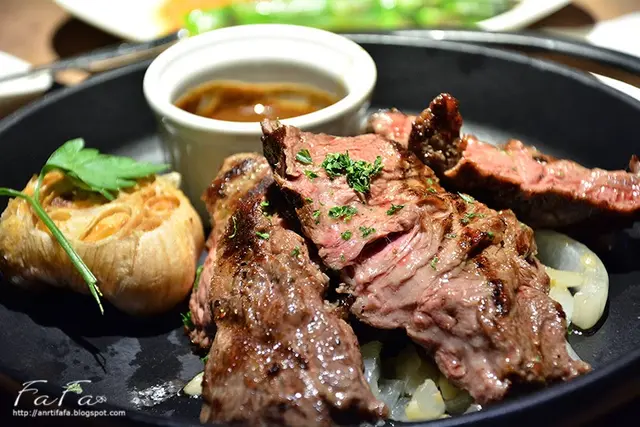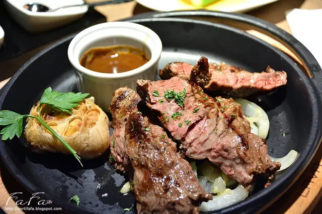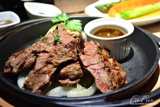 老饕牛排是Choice等級Rib Eye Cap,使用果木燻烤,是限量餐點。