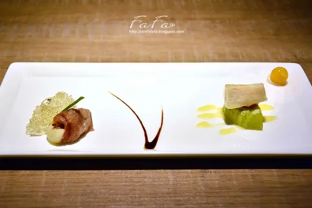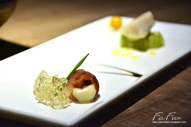 開胃菜 培根起司捲佐薄荷凍 & 果木燻烤魴魚