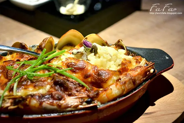 外觀上蝦子沒有像MENU圖片站起來有點小小失望,不過豐厚的起司以及金黃焦脆的表皮很誘人,