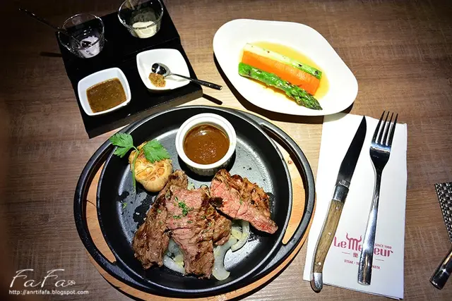 我個人偏好玫瑰鹽以及黑胡椒牛排醬。