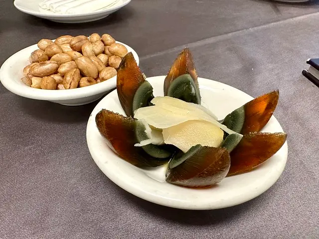 花生和子薑皮蛋是每次都會有的小菜,皮蛋品質很好,是溏心皮蛋,配上小薑一起吃,特別對味;炸花生香酥可口,鹽度恰到好處,非常涮嘴。