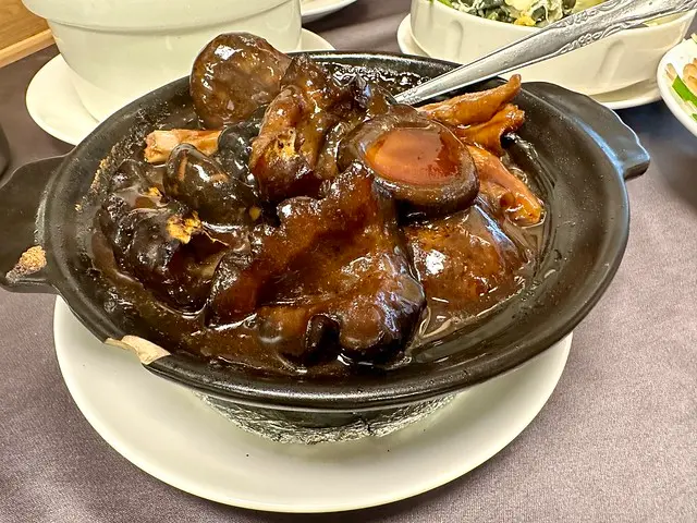 北菇鵝掌煲,這個也是一吃就成主顧的料理,鵝掌軟嫩可口,輕輕一撥就皮骨分離,滿滿的膠質,非常討喜,海參和北菇也很棒,醬汁的味道完美的附著在上面,每一口都醬香味濃。