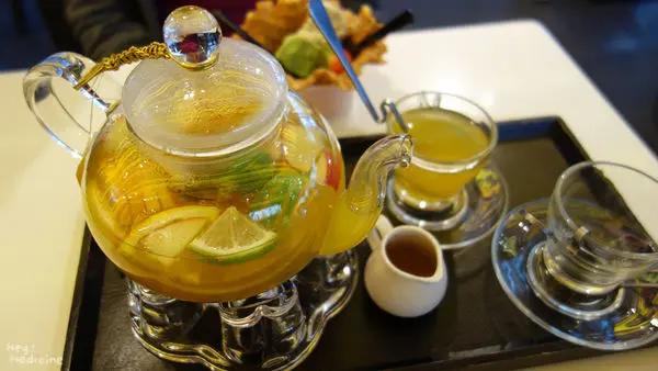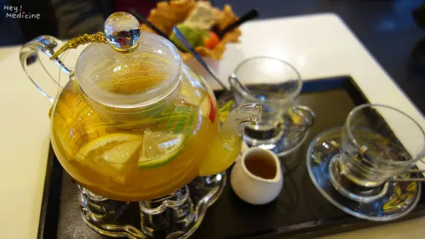 水果茶旁邊也有附上糖漿,不過我覺得他本身就已經很甜了,帶有一點微微的百香果酸。