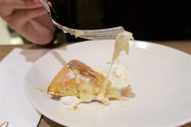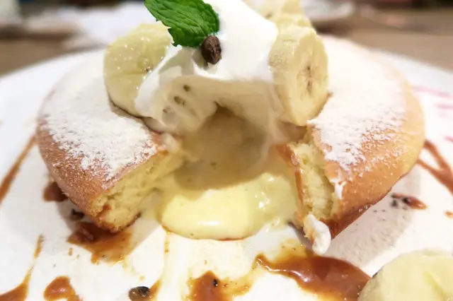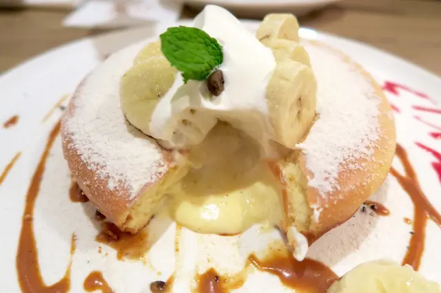 一切開後,裡面的馬斯卡彭起司熱餡就像火山爆發一樣流出來啦~~