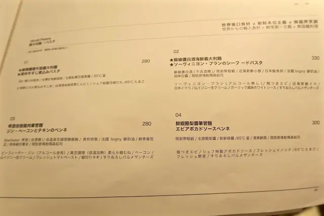 簡單拍了幾頁菜單,鹹食有義大利麵、三明治,但都只有四種口味可以選擇,不知道是不是因為剛開選擇有點少