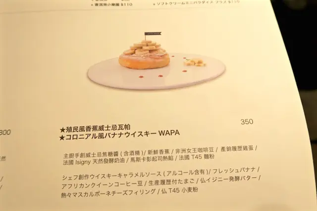 推薦菜色:蘇維儂白酒海鮮義大利麵BBQ雞肉奶油脆煎三明治、殖民風香蕉威士忌瓦帕