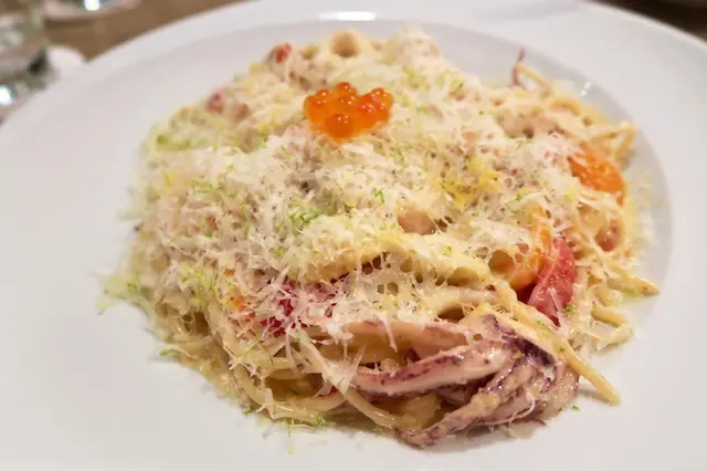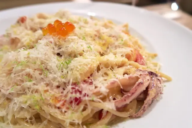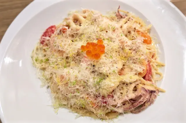 尤其鮭魚卵,輕輕一戳就會爆破,配上濃郁的白醬讓整體味道加分不少
