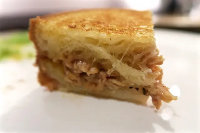 裡面是原塊切片切達乳酪、低溫真空嫩雞胸肉及煙燻BBQ醬,乳酪味道很濃,但又不會膩~