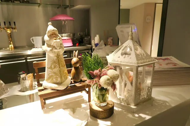 裝潢以白色為主,配上粉色的聖誕裝飾非常浪漫的感覺