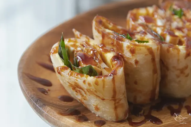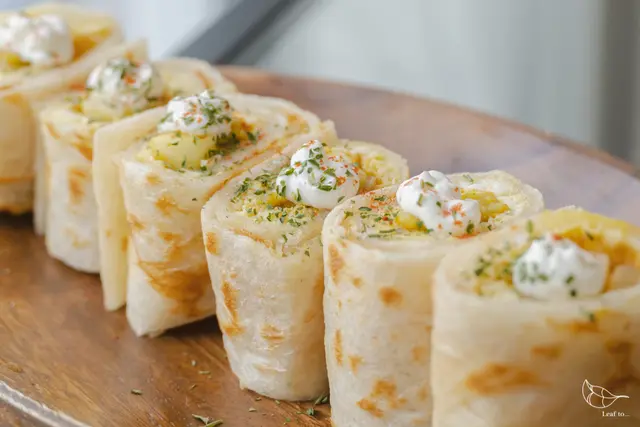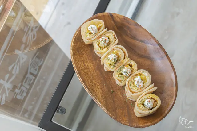 若是單吃裡頭包裹著的咖哩調味薯泥,吃起來頗有台灣式咖哩的咖哩粉香氣;但沐沐家有趣地在上方點綴上了優格,讓整體吃起來突然多了幾分南洋氣氛,是很有店家自己特色的一種口味選擇。