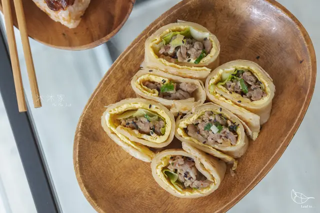 具有代表性的台式早餐--蛋餅,現在各式各樣的創意口味蛋餅也越來越多,但若是能結合同樣具有台灣特色的風味菜餚,想必會更有吸引力。沐沐家朝食就將三杯雞的元素放進了蛋餅裡,夾進雞肉、蘸上醬汁,加上裏頭的羅勒,吃起來還真有幾分三杯雞的模樣。