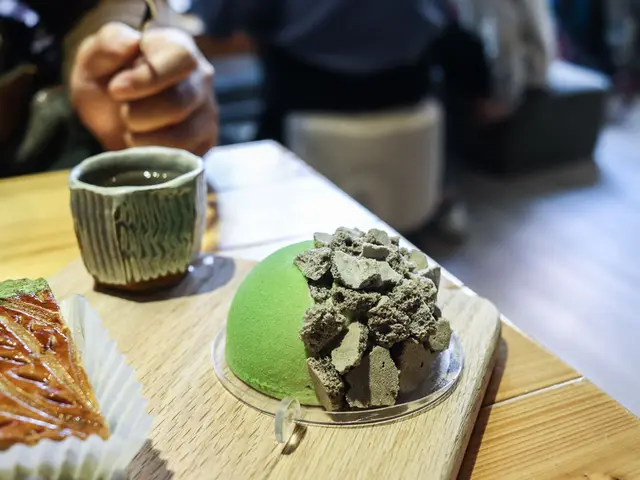 我沒有吃過法式國王派,這是一種法國傳統家庭的必吃糕點,象徵家族每個人都能平安順利,點了抹茶紅豆口味,千層的外皮酥香有很重的奶油味,內餡抹茶餡綿綿的,不太甜。還加入了麻糬、紅豆,口感多元層次豐富,整體吃起來還與中式大餅有點神似,跟想像中的法式甜點很不同,口味上我們都很喜歡。