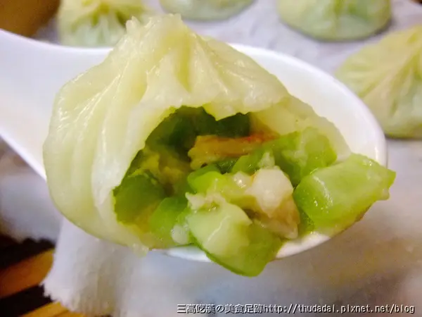一吃之下確實很清爽!裡頭雖然不像肉餡小籠包那樣濃郁肉汁的感覺,但是裡面的