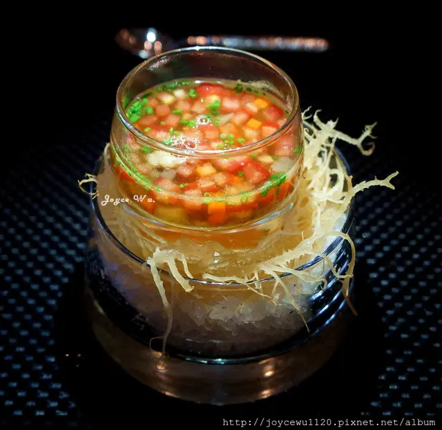 "蕪菁龍蝦凍搭配脆片蕪菁澄清湯"