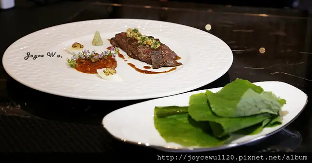 希希覺得最禪風的一道 野生山葵葉和牛腹肉的搭配