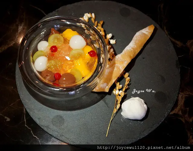 滿意,這裡的甜點屬於盤飾甜點,當天兩樣套餐的甜點,擺盤和整體食材設計都非常有創意,為夏天量身打造的清爽口味,水果分子料理和抹茶紅豆球都好好吃呢。