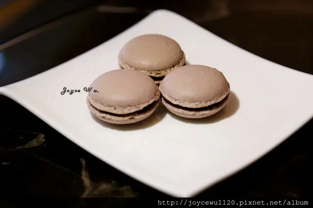 入口先感受到巧克力為基底的馬卡龍餡 紫蘿蘭花香竄出 尾韻是黑醋栗的酸甜滋味 很好吃呢