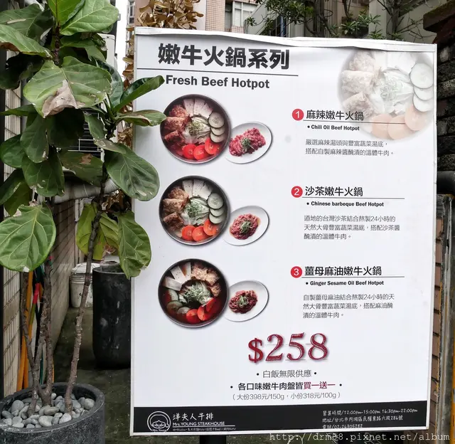 門口旁也有個大大的招牌,介紹嫩牛火鍋系列,
