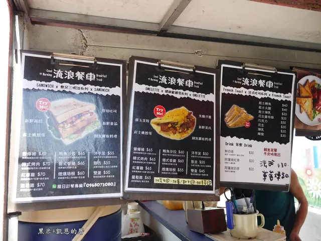 流浪早餐車,鐵板三明治,假日不營業,上班族遲到也要手刀快買,現場紅茶鮮奶茶可以續杯@黑米+凱恩的厝