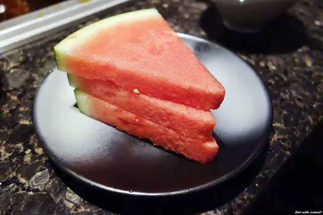 自助區除了醬料外,還有些小菜、水果和粥拿,都是放著隨客人自行取用的,補菜也很勤快,以免費供應的標準來看其實味道都還行,等火鍋上桌前墊胃打發時間倒也實用。