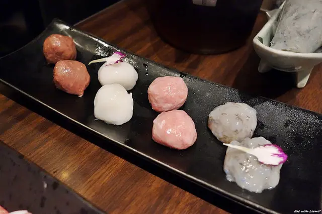 綜合丸類拼盤包含芝士牛肉丸、墨魚丸、脆骨鮮肉丸、蝦丸,其中對牛肉丸印象最好,咬下味道濃厚、頗有肉汁,其他幾樣味道也不錯,該彈牙的該有味的都沒少,水準很平均。