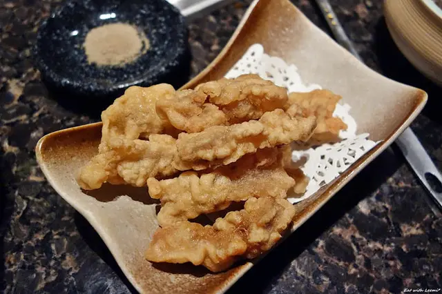 吃重慶麻辣鍋常見的酥肉,能直接吃,也可以丟下鍋當火鍋料那樣煮,炸衣會吸入湯汁,有點像是排骨酥那樣,有的店家酥肉會混一點花椒去調味,味道麻香麻香的,不過海底撈吃太不出來這味。