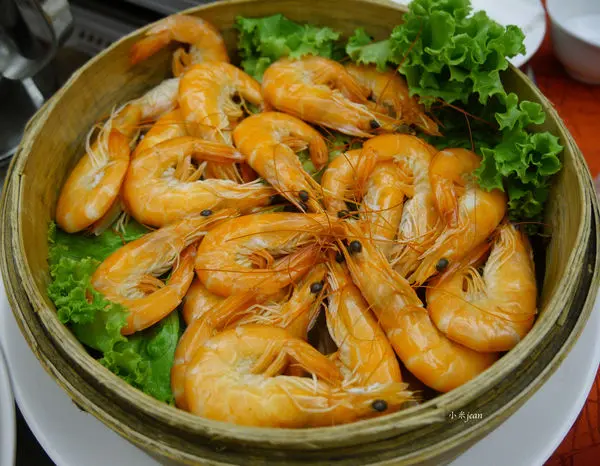 蝦子還滿大尾的,腸泥也有整理乾淨,透過圓龍蒸熟的烹調方式