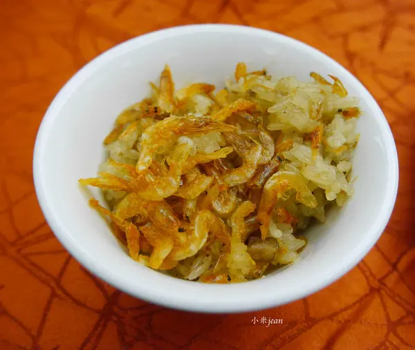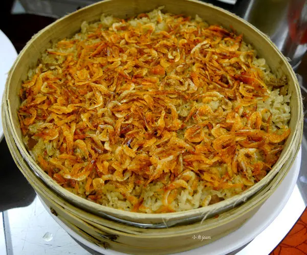 小米我好推薦這道,米糕加入火腿丁、乾香菇蒸的入味,最上方有煸香的櫻花蝦