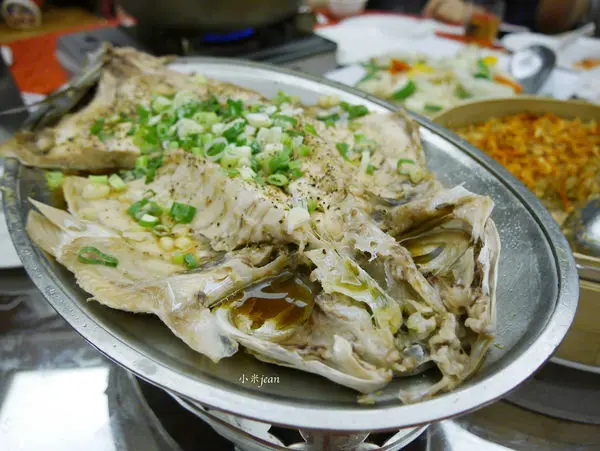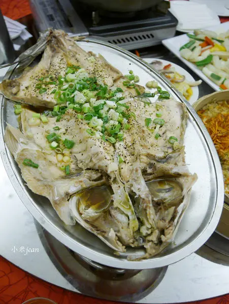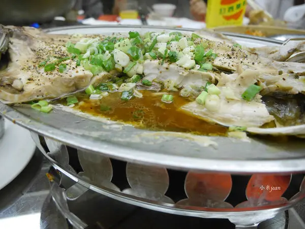 今天是很大一尾的烏魚,清蒸的方式,最上方撒上黑胡椒粒與蔥末