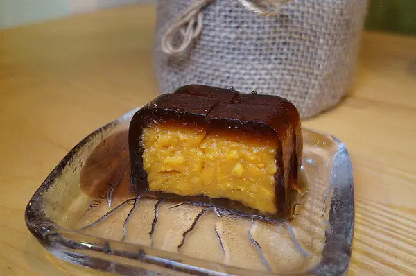涼菓子帶有黑糖風味,裡面包裹著綿密香甜滑順的地瓜泥,非常細緻,淡雅甜香,雖然這款甜度較高,