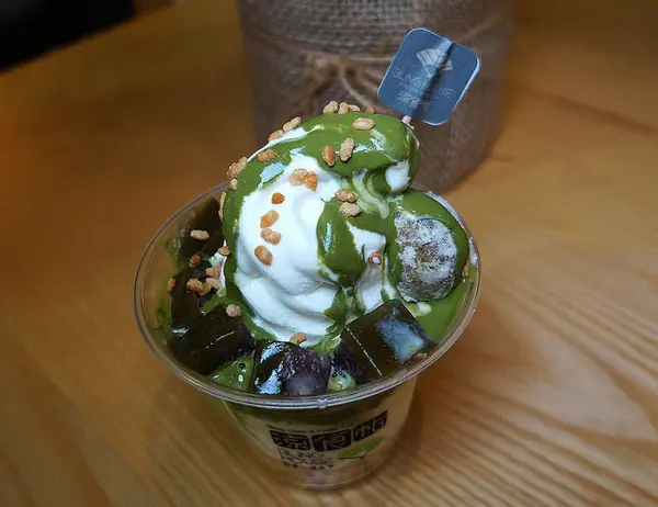 選用禾香鮮奶製成的霜淇淋,濃郁香甜奶香卻不膩口,淋上的日本靜崗佐藤園抹茶,香濃的抹茶口齒留香,