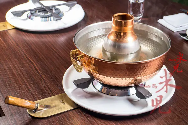 除了口腹之欲的滿足之外,鄧師傅心目中的頂級火鍋店,連呈現方式都很講究,最讓人津津樂道的就是火鍋爐具採用了義大利進口的頂級廚房爐具品牌GLEM PROGETTI的產品,以打破傳統統的設計,讓爐頭在桌面上也可以成為裝置藝術,除了有獨特的造型開關之外,白瓷爐盤與十字型交叉的黑色爐架組合在一起,讓整體多了高雅的感覺,搭配上鄧有癸特別從日本進口的紫銅鍋,光是視覺效果就很「高級」,再加上特別挑選過的碗碟與訓練有素的服務人員,呈現出來的用餐氛圍就很不一般。