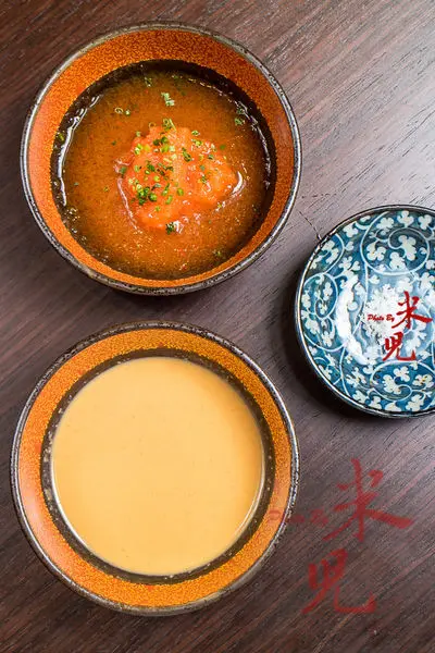 這個啥米火鍋,絕對會顛覆一向講究「湯頭」的台灣人對火鍋的看法,首先,鄧師傅認為,因為選擇的食材夠好,所以在這裡沒有什麼精燉慢熬,也沒有什麼驚世高湯,湯底就是清水加上一片北海道的利尻昆布,水煮滾後就把昆布撈掉,才不會弄濁了湯頭,所以,可以保證的是,這裡的湯頭絕對「無多餘添加物」,非常符合在食安風暴中,現代人對於安全飲食的要求。