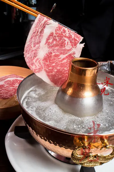 因為牛肉品質非同凡響,所以在「鍋裡繞一圈」,就是最佳的品嚐熟度。