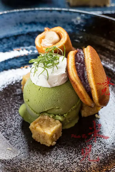 甜點之一的銅鑼燒是自製,搭配抹茶冰淇淋,是相當有水準的日式甜品。