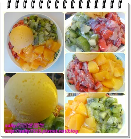 芒果冰淇淋吃起來芒果的味道還蠻重的,在水果方面,芒果因為是台灣當季的水果,吃起來還蠻甜的,但是奇異果和草莓有可能是進口水果的關係或是不是當季水果,吃起來就沒有那麼甜,有一點點偏酸