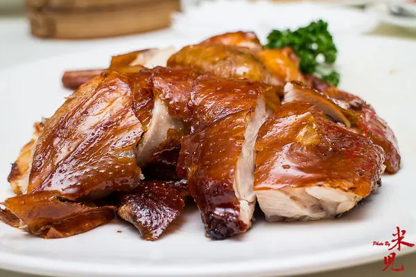 九華樓的脆皮雞一向有口皆碑,皮薄如紙,光澤誘人,脆香的皮咬下去,肉依然鮮美多汁。