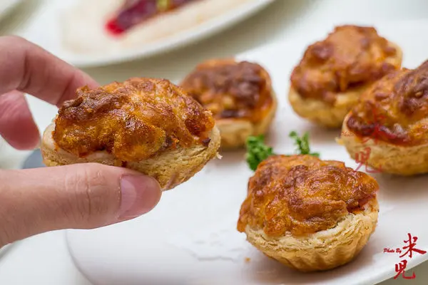 至於烤鴨的其他吃法,這裡的變化也很多,最重要的是,在伍洪成師傅的巧手下,又是鴨粥、又是鴨鬆、又是炆米粉.......最精彩的莫過於鴨酥,這是把鴨肉取下後,以叉燒醬炒過再包進酥塔皮裡,灑上起司再焗烤至表面金黃,拈在手上就覺得輕脆誘人,咬下去更覺得精彩!