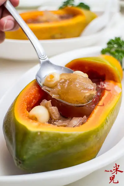 最後的甜湯是木瓜銀耳蓮子湯,溫潤養生的甜品。
