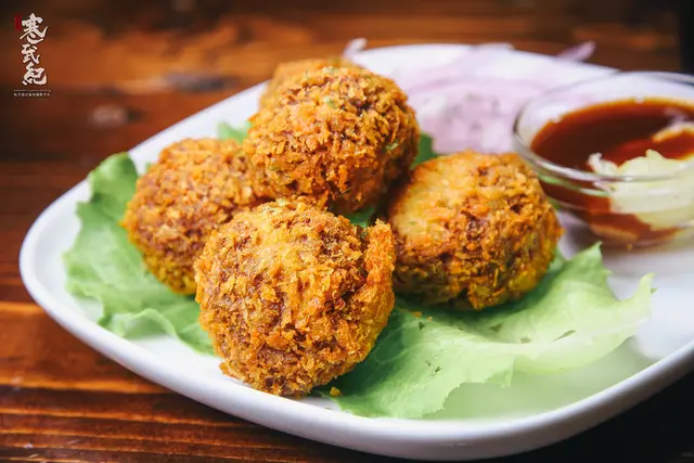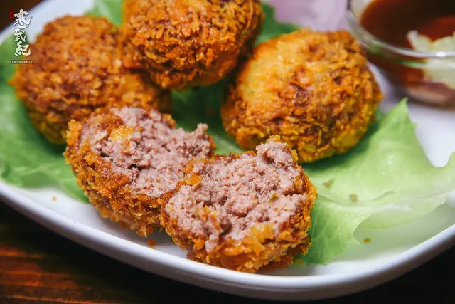 紮實的五顆牛肉球,炸的金黃酥脆,醬汁也非常特別,是日式豬排醬配搭上美乃滋,吃起來酸甜,很開胃!
