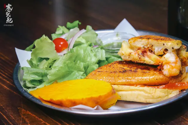 店內極受歡迎的三明治,蝦仁尺寸不小,吃起來口感韌度不錯,加入了野菇,鮮香對味。