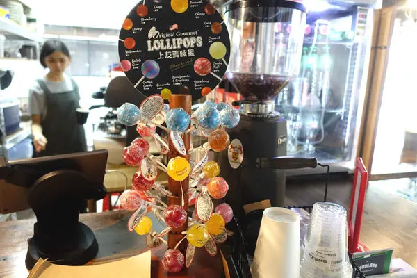 櫃檯販售少見的五彩繽紛棒棒糖,帶小孩同行可以考慮這個安撫小物!!!