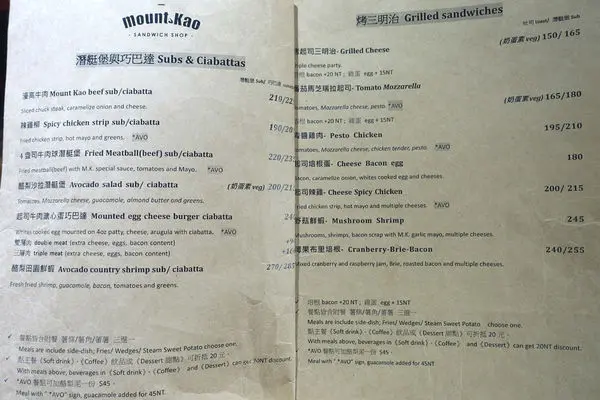 三明治系列還有巧巴達、潛艇堡、吐司(牛奶或全麥)之分。