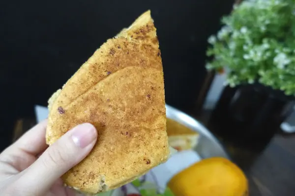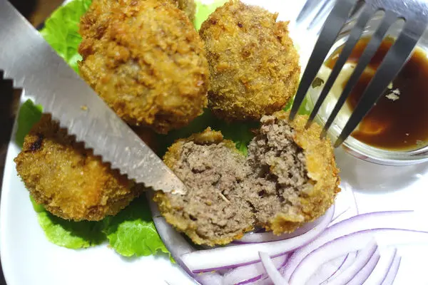 外層炸粉的特殊香氣帶著鮮味,裡頭是滿滿滲出肉汁的碎牛肉,