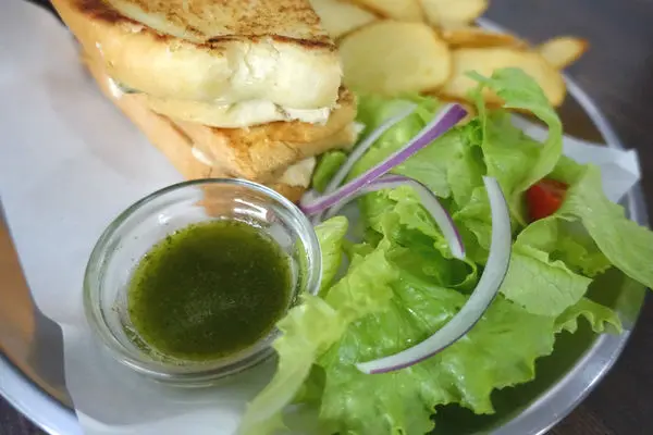 沙拉的配醬搭配的是店內特製的香菜神秘醬汁@@
