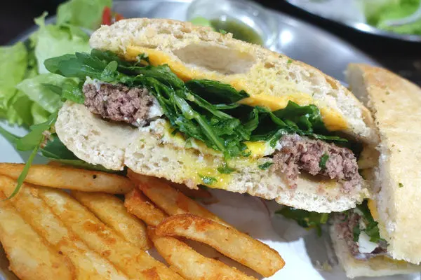 起司牛肉溏心蛋巧巴達,清爽無負擔,與牛肉直接連結,體驗牛肉原汁原味